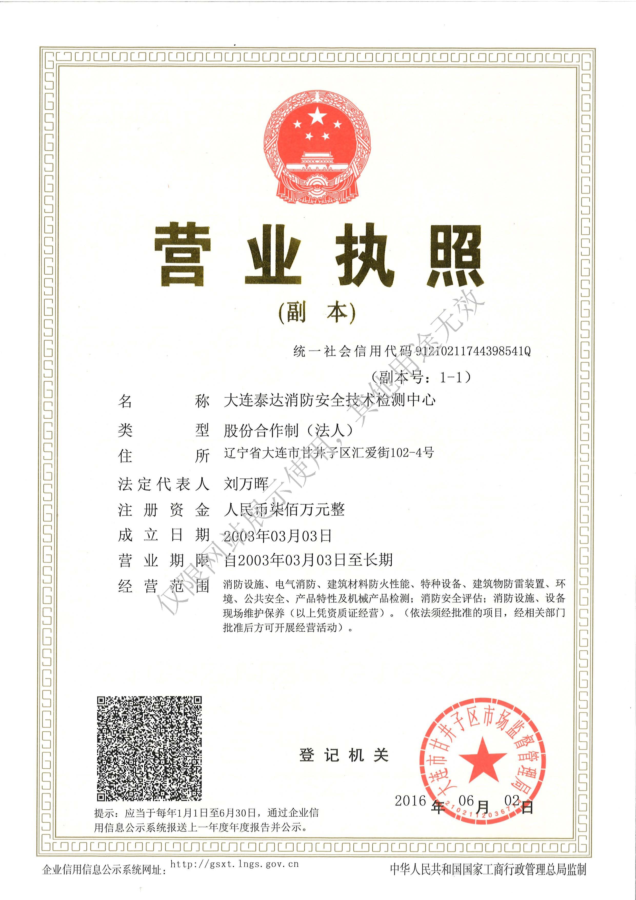 · 是經“社會消防技術服務信息系統(tǒng)”備案并公示的消防技術服務機構,已取得中國氣象局頒發(fā)的雷電防護裝置檢測資質證書、遼寧省質量技術監(jiān)督局審核批準的檢驗檢測機構資質認定證書(CMA)及包括消防檢測、電氣檢測、雷電防護裝置檢測、防火涂層厚度檢測等在內的200余項檢驗檢測能力,取得大連市應急管理局頒發(fā)的安全生產標準化證書,獲得質量管理體系、環(huán)境管理體系、職業(yè)健康安全管理體系認證證書,是經備案的高新技術企業(yè),可獨立出具具有證明作用的檢測報告。